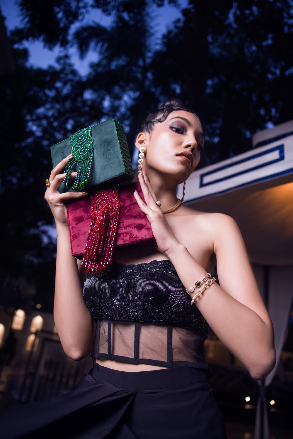 Indulge in the mesmerizing world of haute couture with the exquisite allure of our clutches. These handheld marvels are handcrafted by virtuoso artisans, utilizing only the most sumptuous materials.