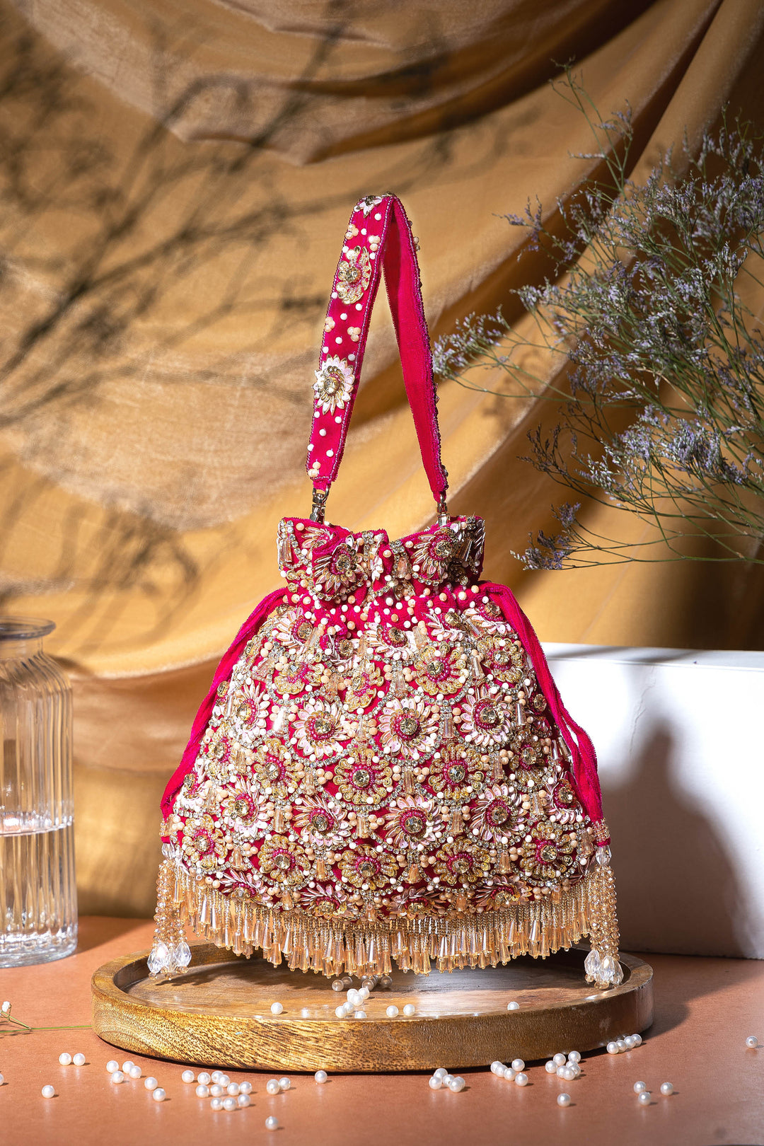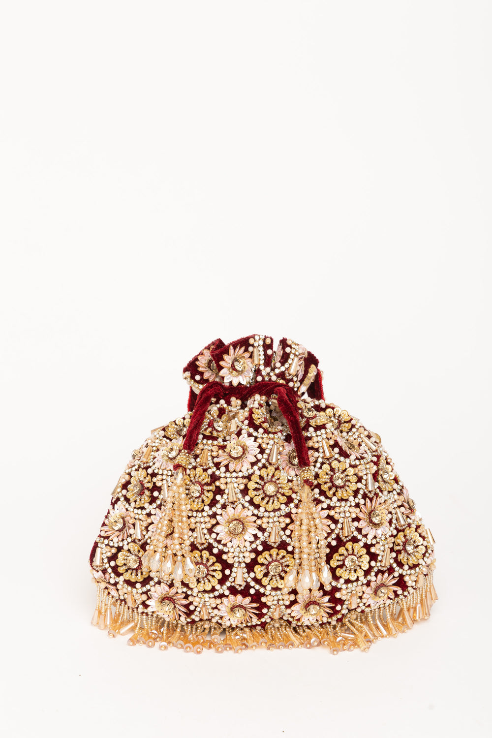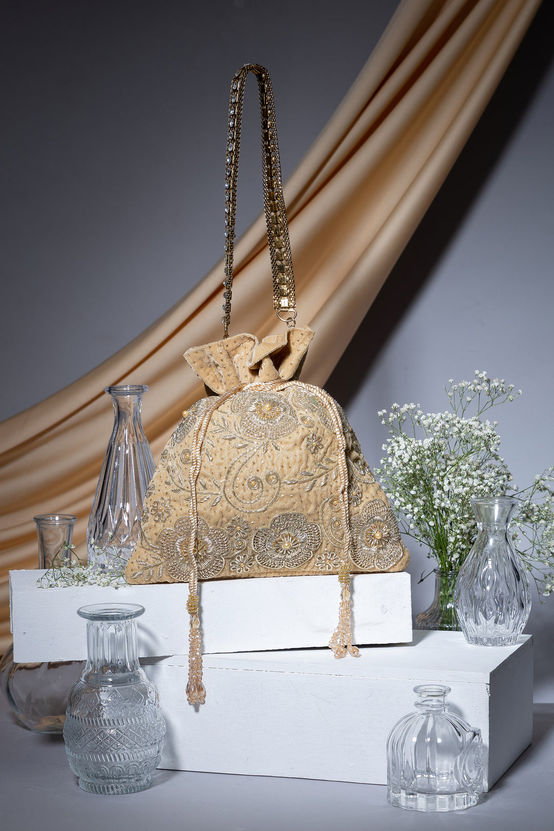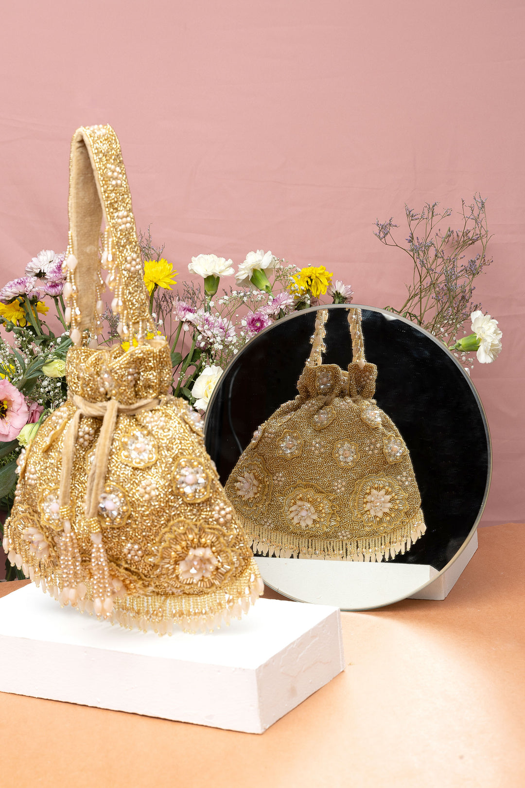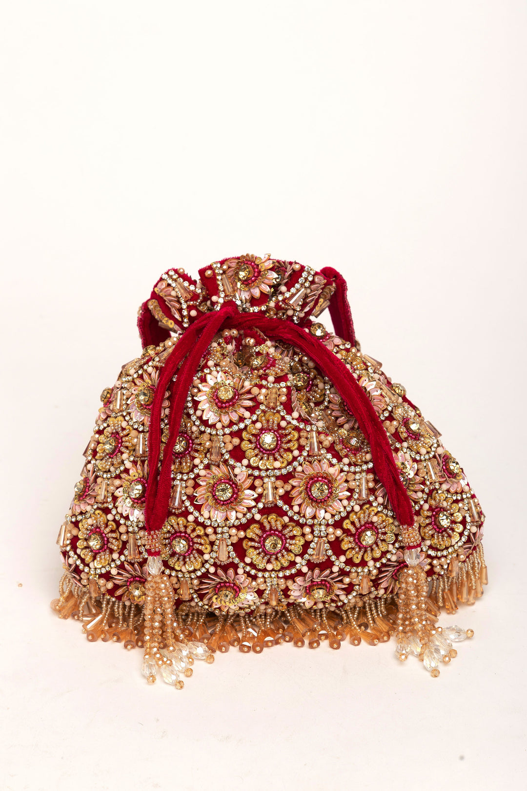 Nestled at the crossroads of tradition and contemporary chic, these ornate pouches are a testament to the timeless legacy of India's rich heritage. Each potli is a symphony of craftsmanship, interweaving intricate patterns and vibrant hues.
