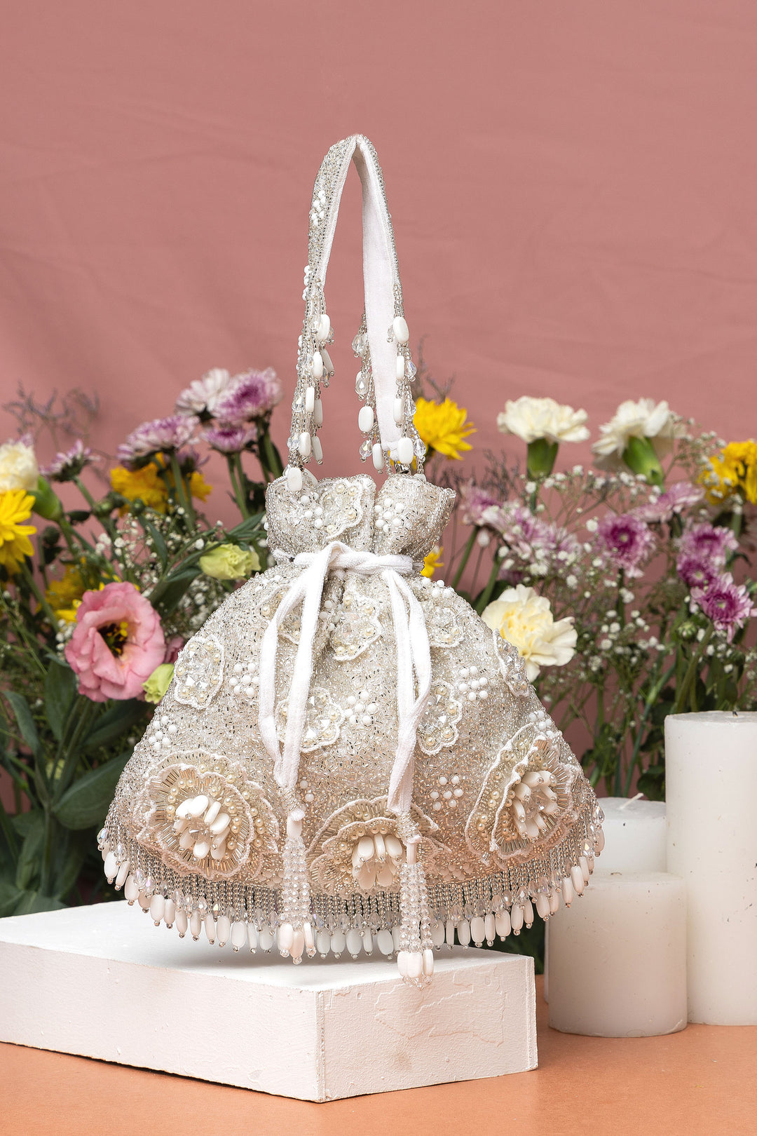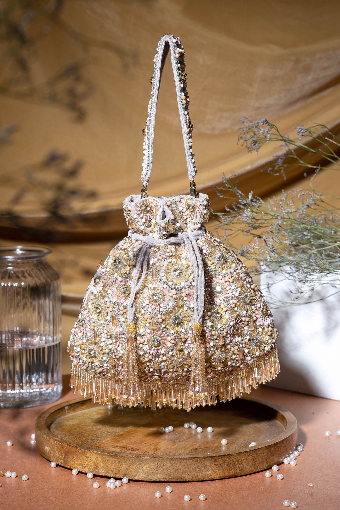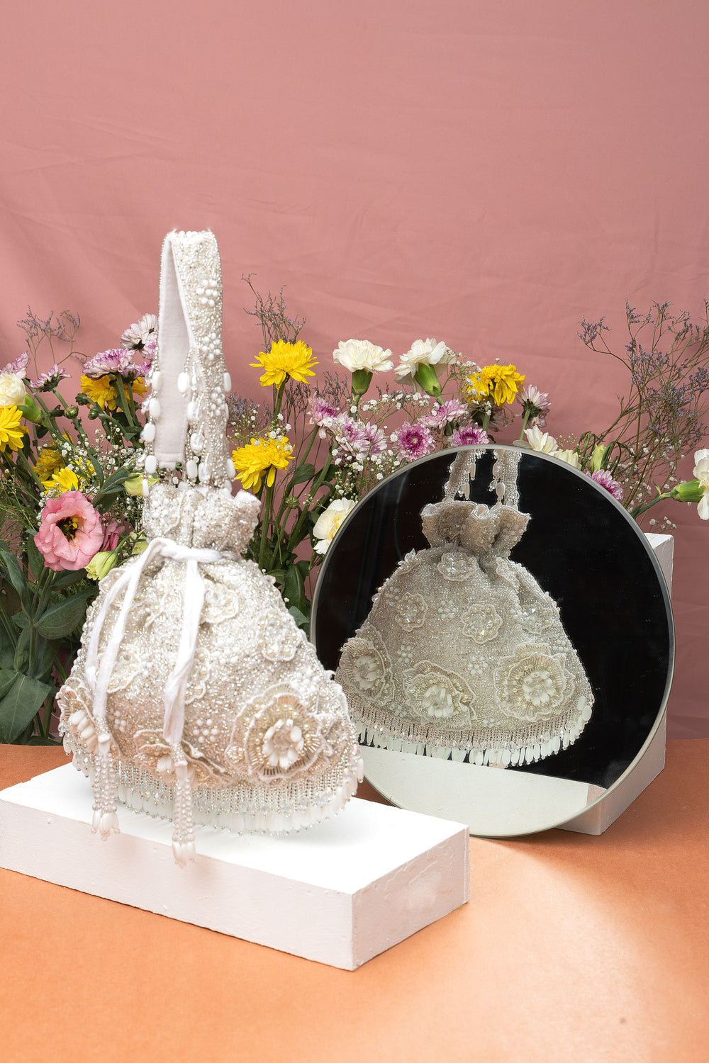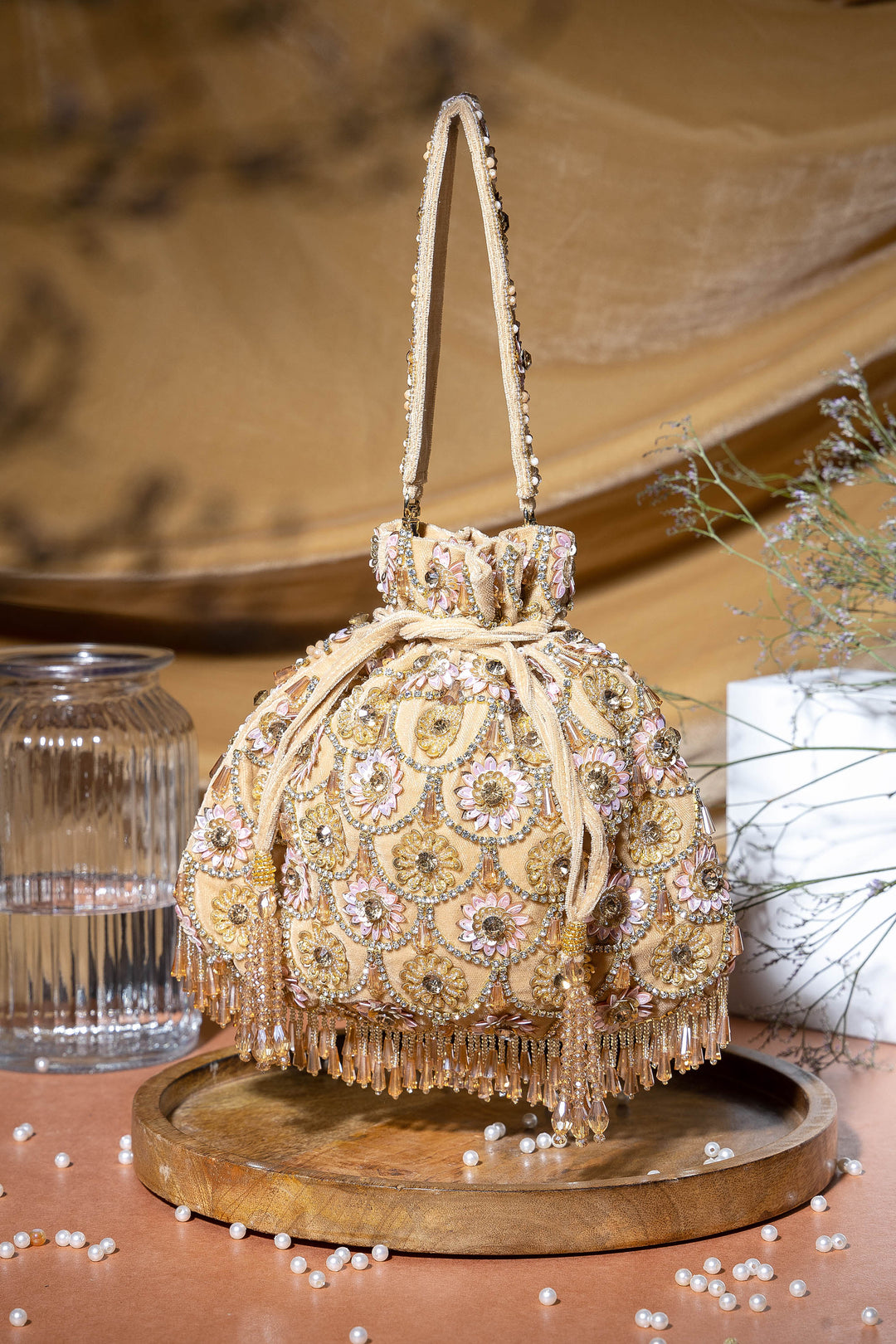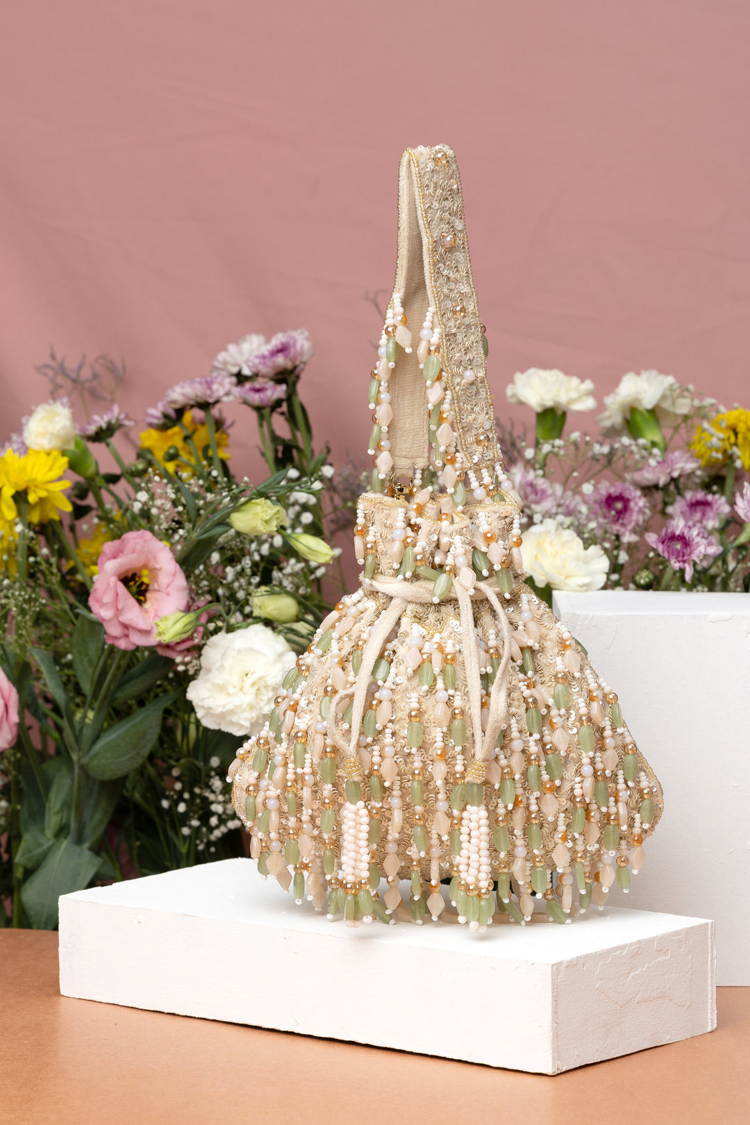 Nestled at the crossroads of tradition and contemporary chic, these ornate pouches are a testament to the timeless legacy of India's rich heritage. Each potli is a symphony of craftsmanship, interweaving intricate patterns and vibrant hues.