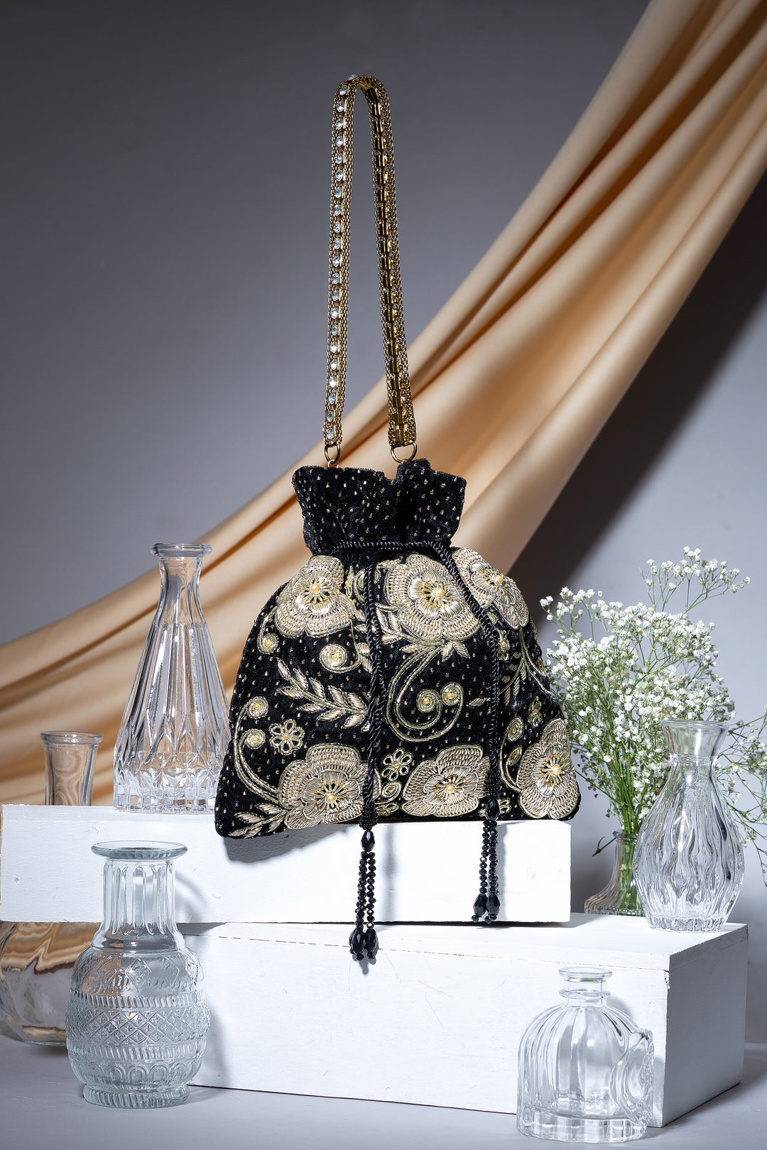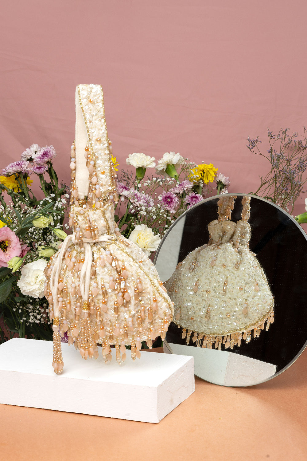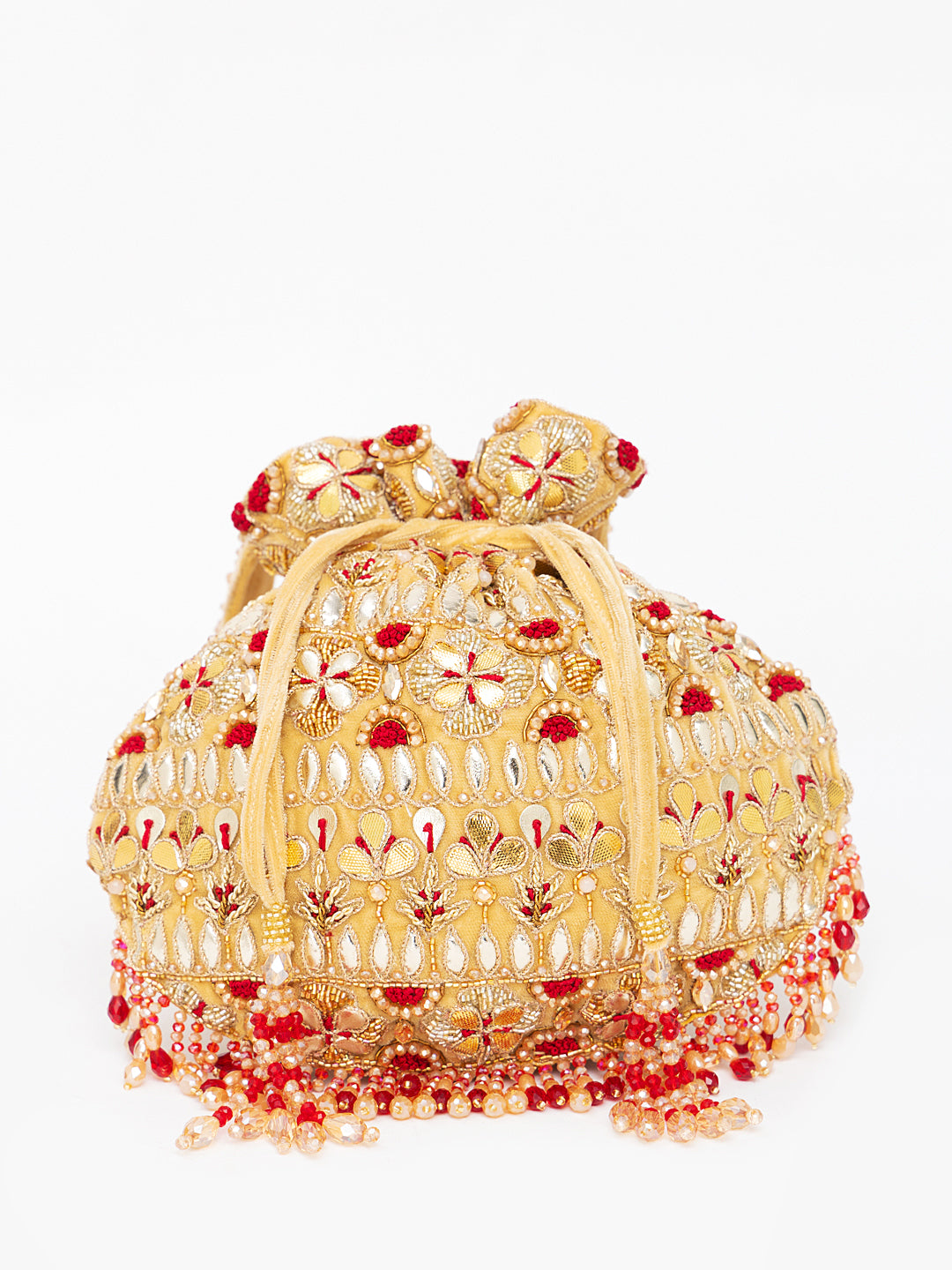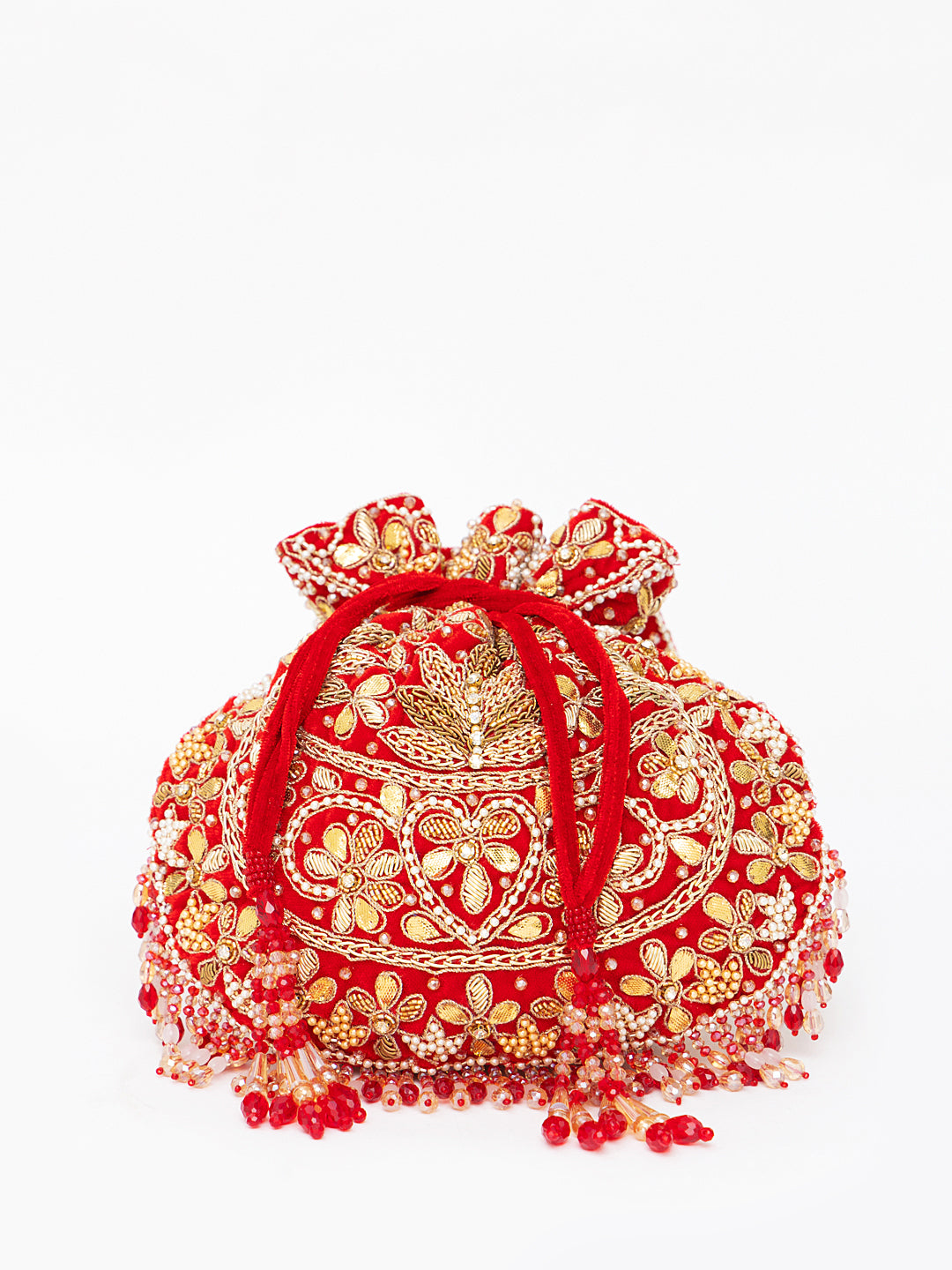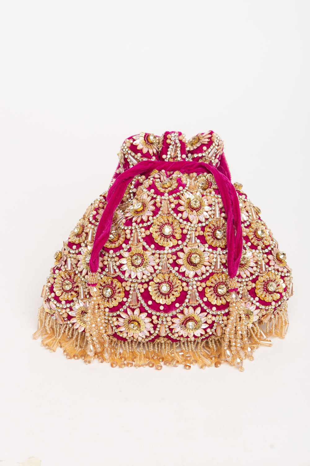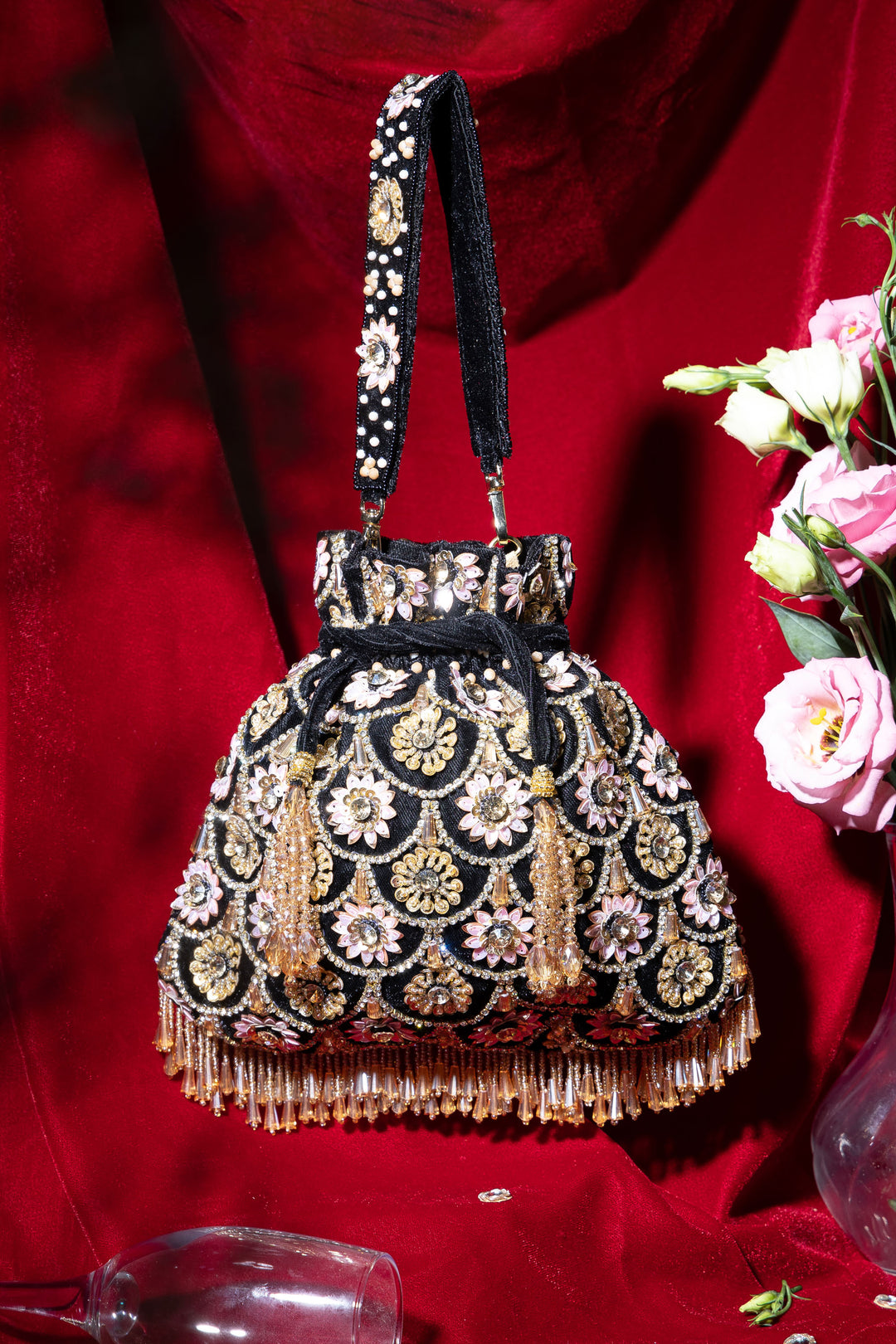 Nestled at the crossroads of tradition and contemporary chic, these ornate pouches are a testament to the timeless legacy of India's rich heritage. Each potli is a symphony of craftsmanship, interweaving intricate patterns and vibrant hues.