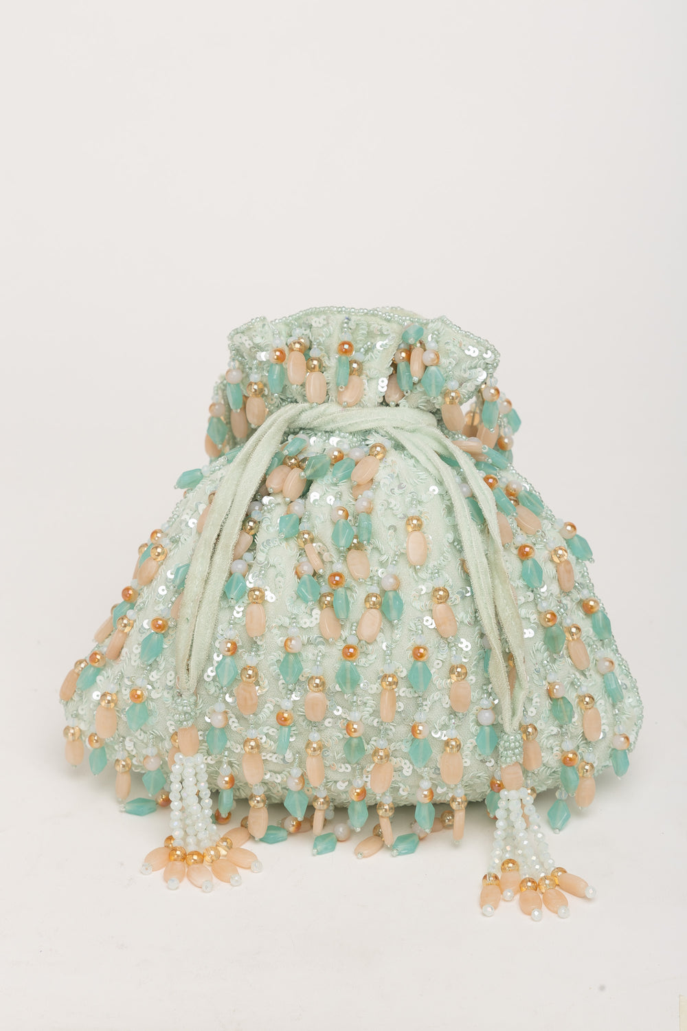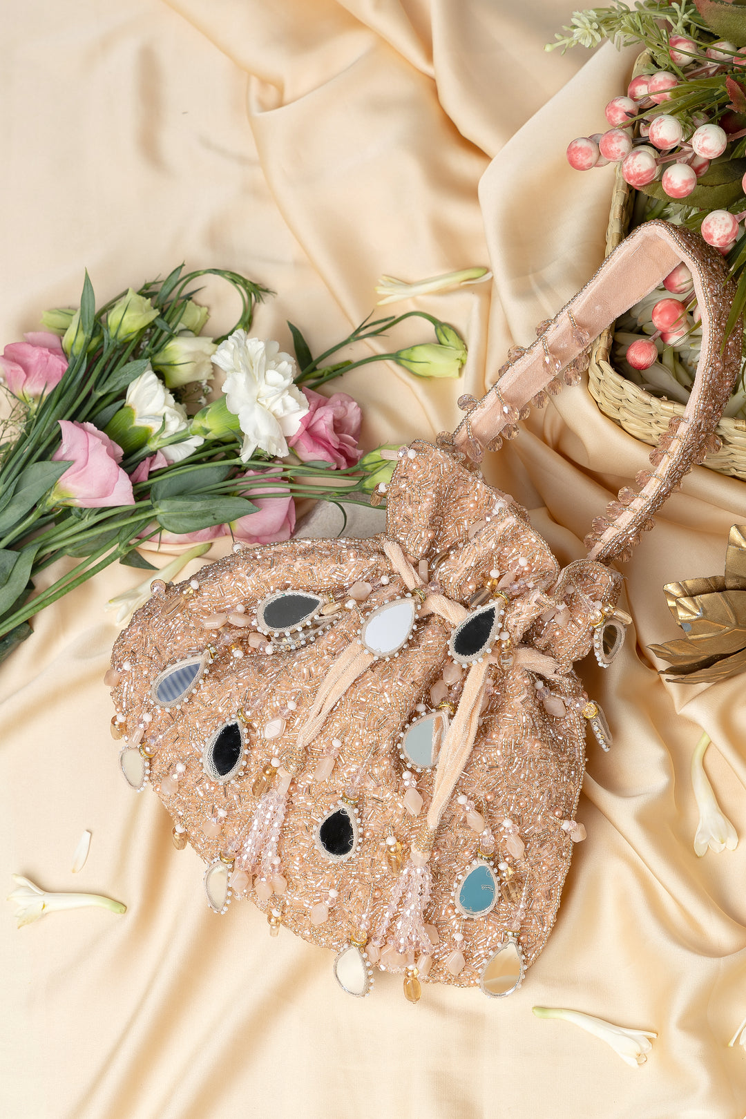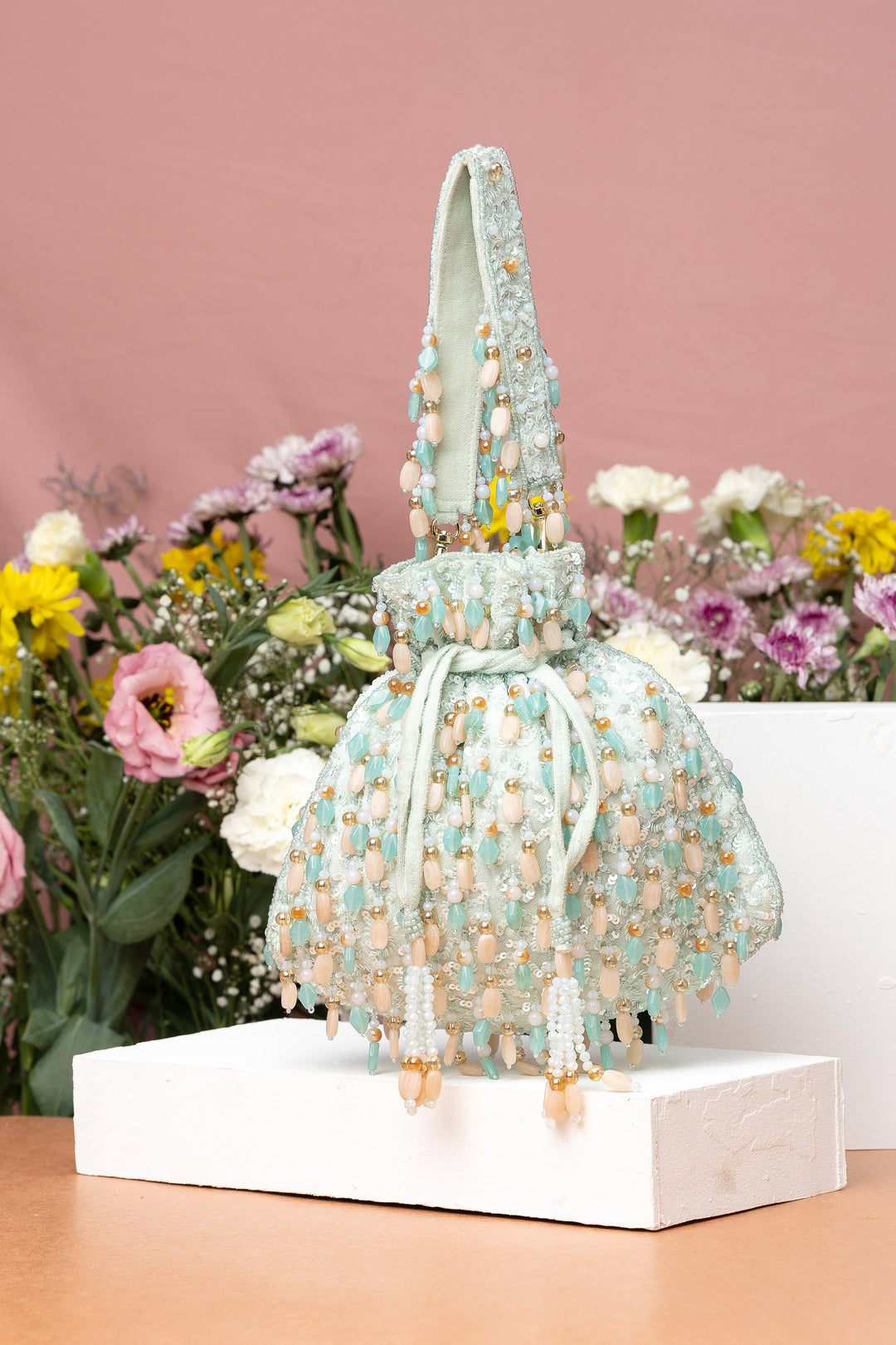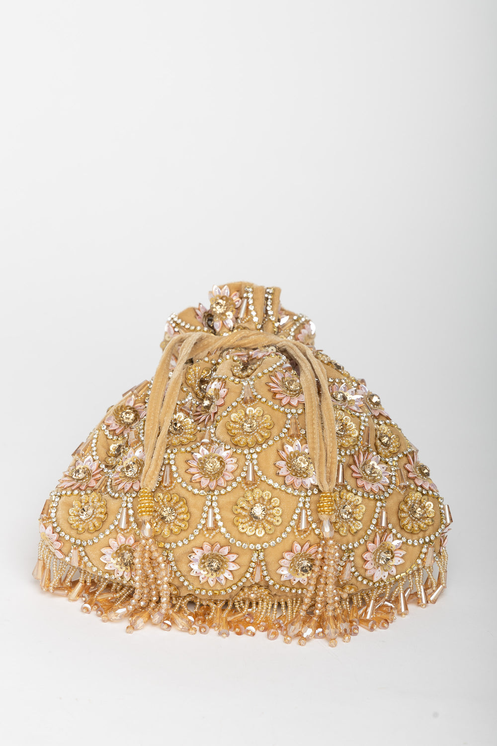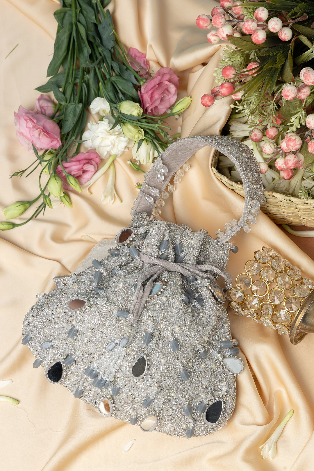 Nestled at the crossroads of tradition and contemporary chic, these ornate pouches are a testament to the timeless legacy of India's rich heritage. Each potli is a symphony of craftsmanship, interweaving intricate patterns and vibrant hues.