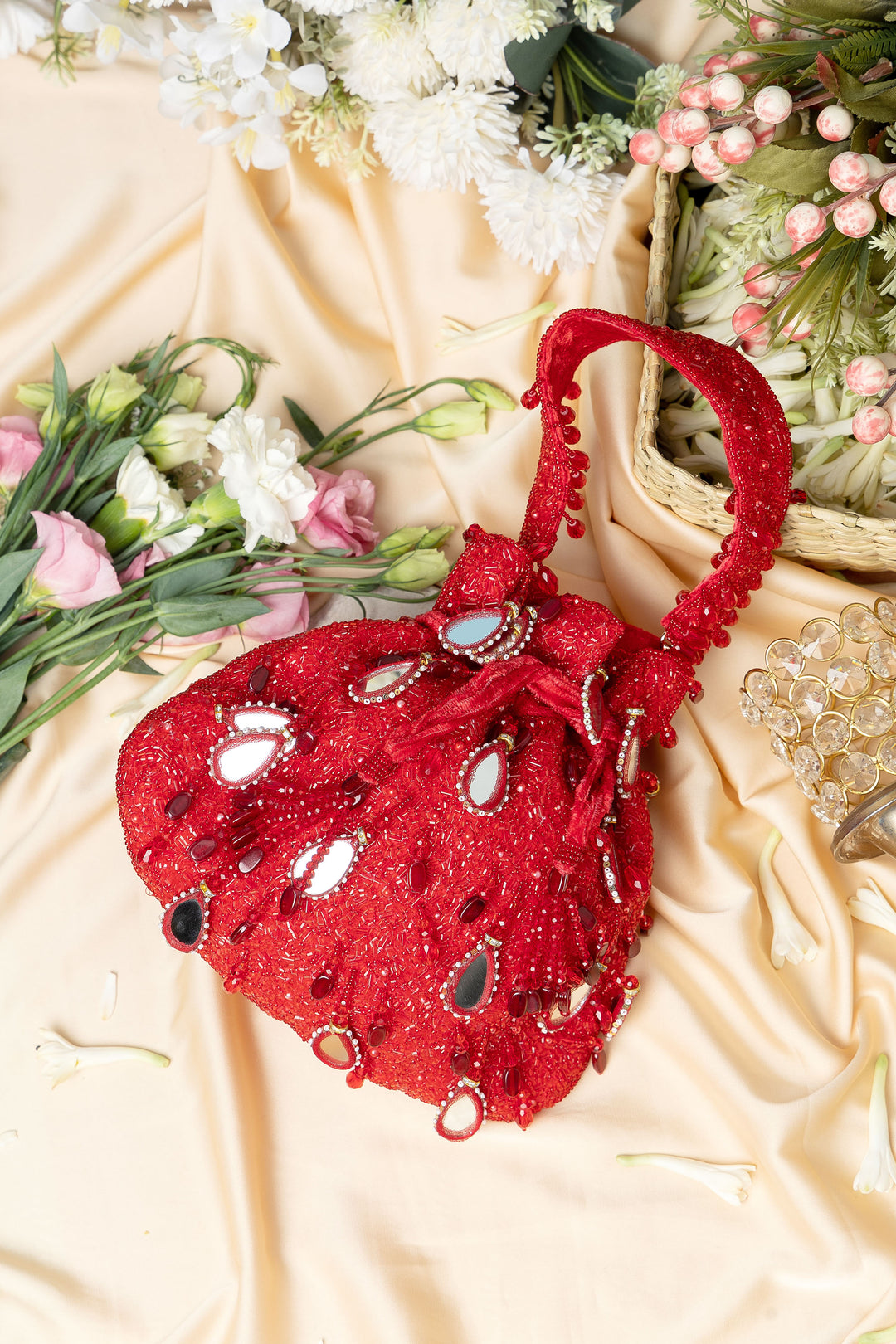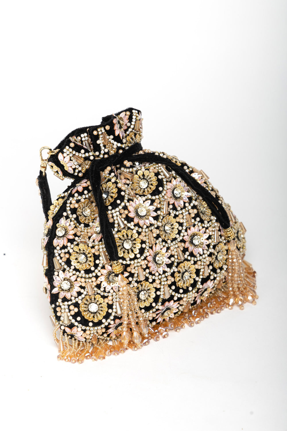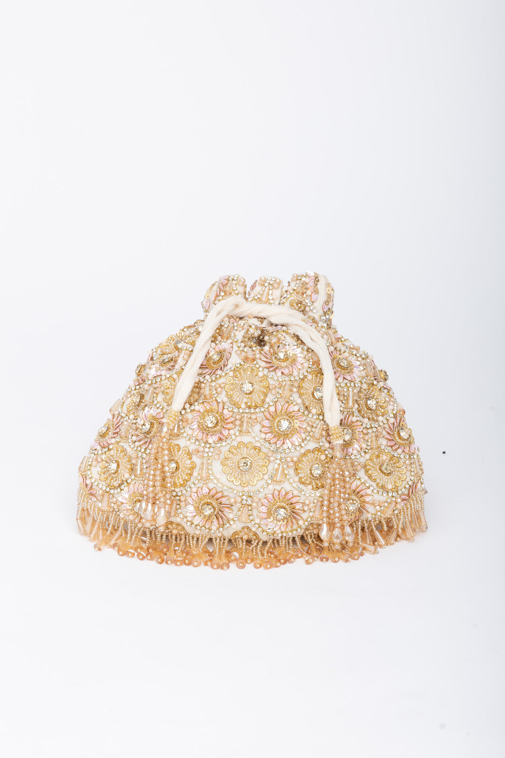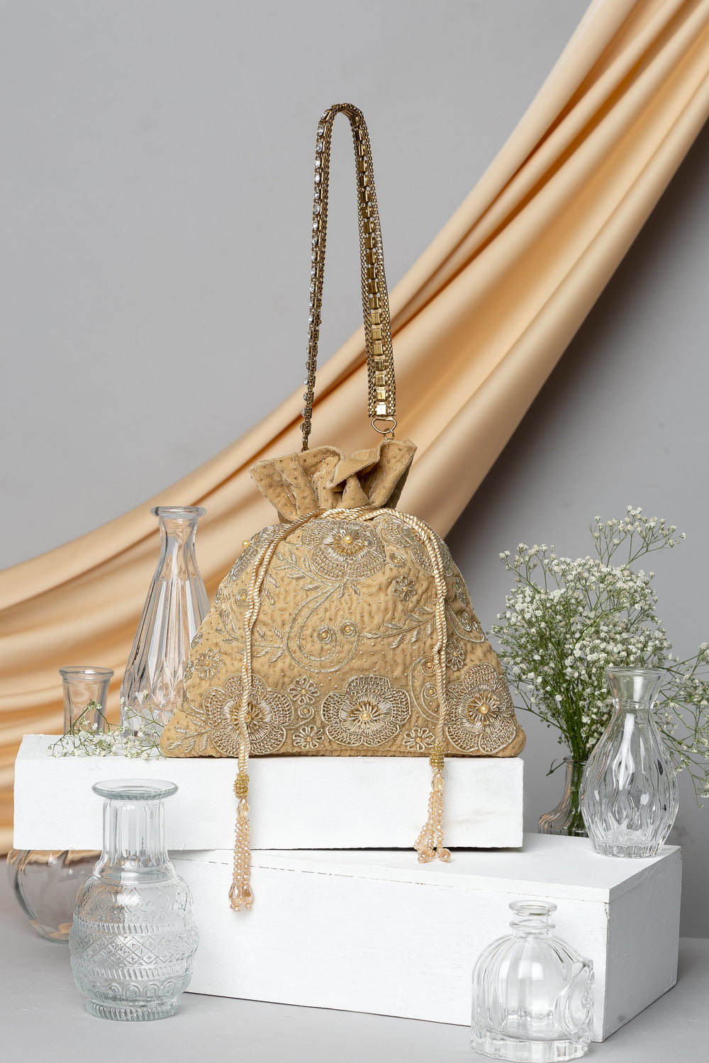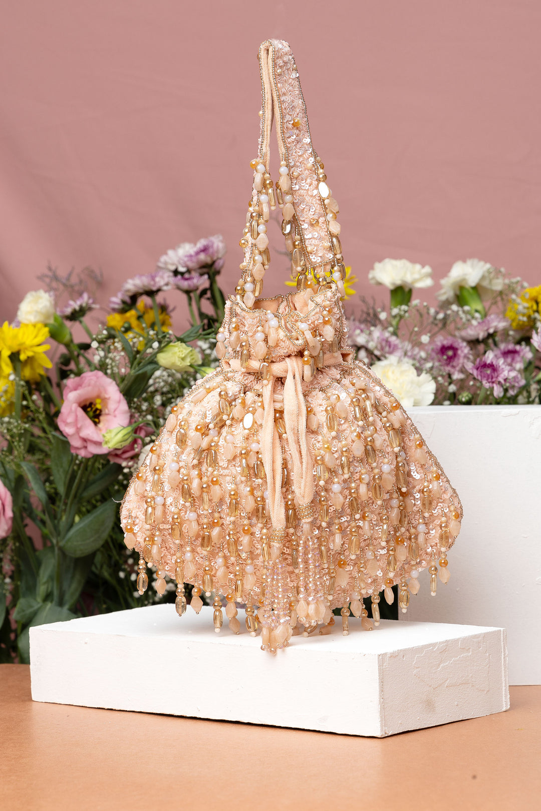 Nestled at the crossroads of tradition and contemporary chic, these ornate pouches are a testament to the timeless legacy of India's rich heritage. Each potli is a symphony of craftsmanship, interweaving intricate patterns and vibrant hues.